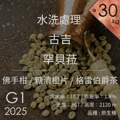 產品說明 產地 :衣索比亞 產區 : GUJI 古吉 地區 : 罕貝菈 產地高度 : 海拔 2120 品種 : 衣索比亞原生種 等級 :G1 含水量 : 10.7 密度 : 867 瑕疵率 :1.8%